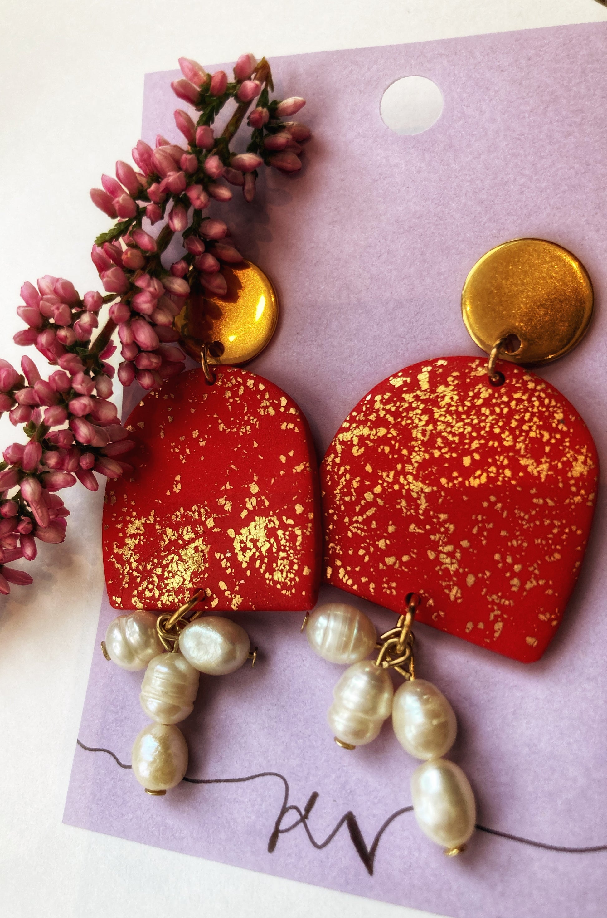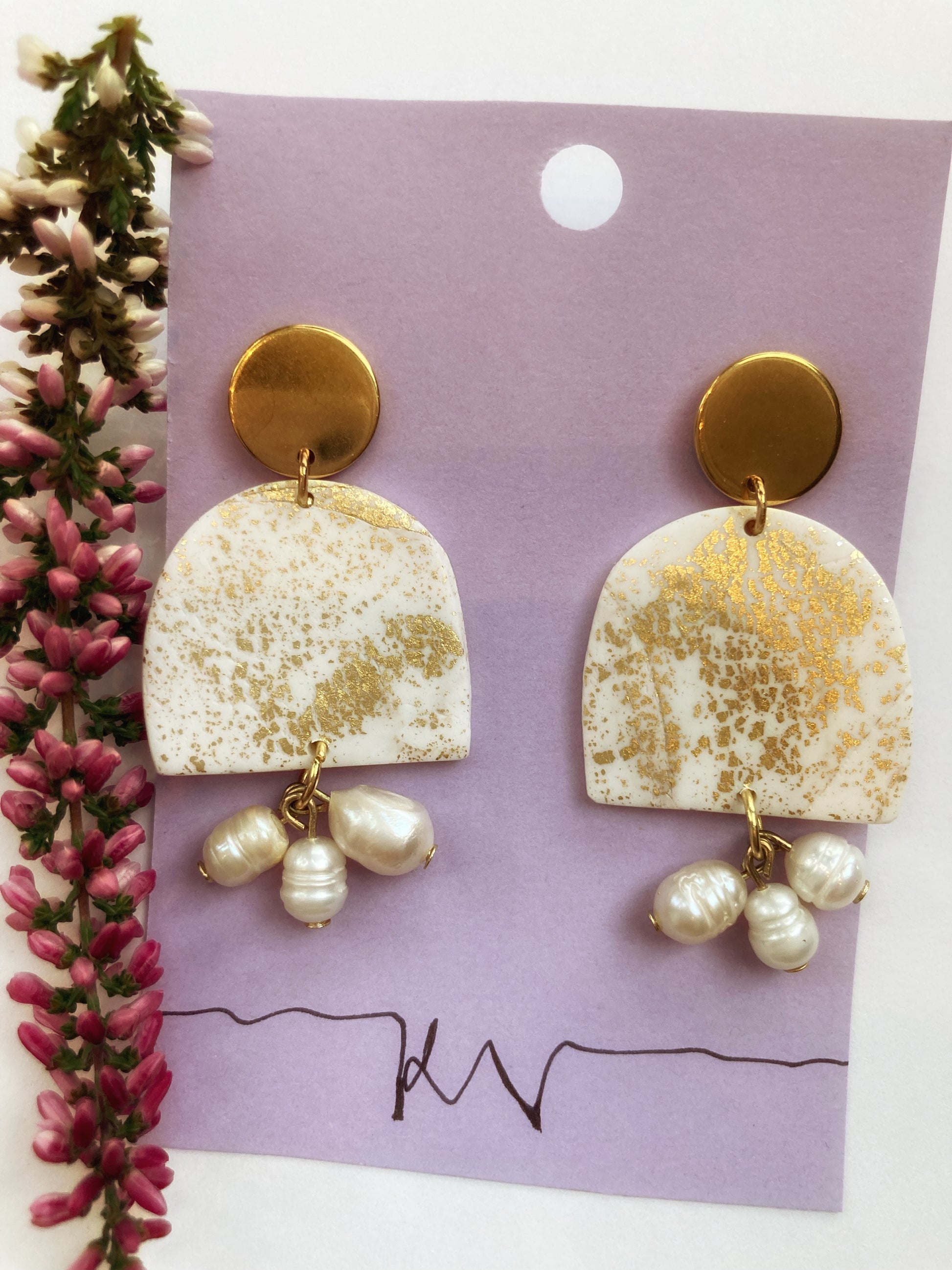 Materiaali: Polymeerisavi, lehtikulta/hopea, kirurginteräs, makeanveden helmet.