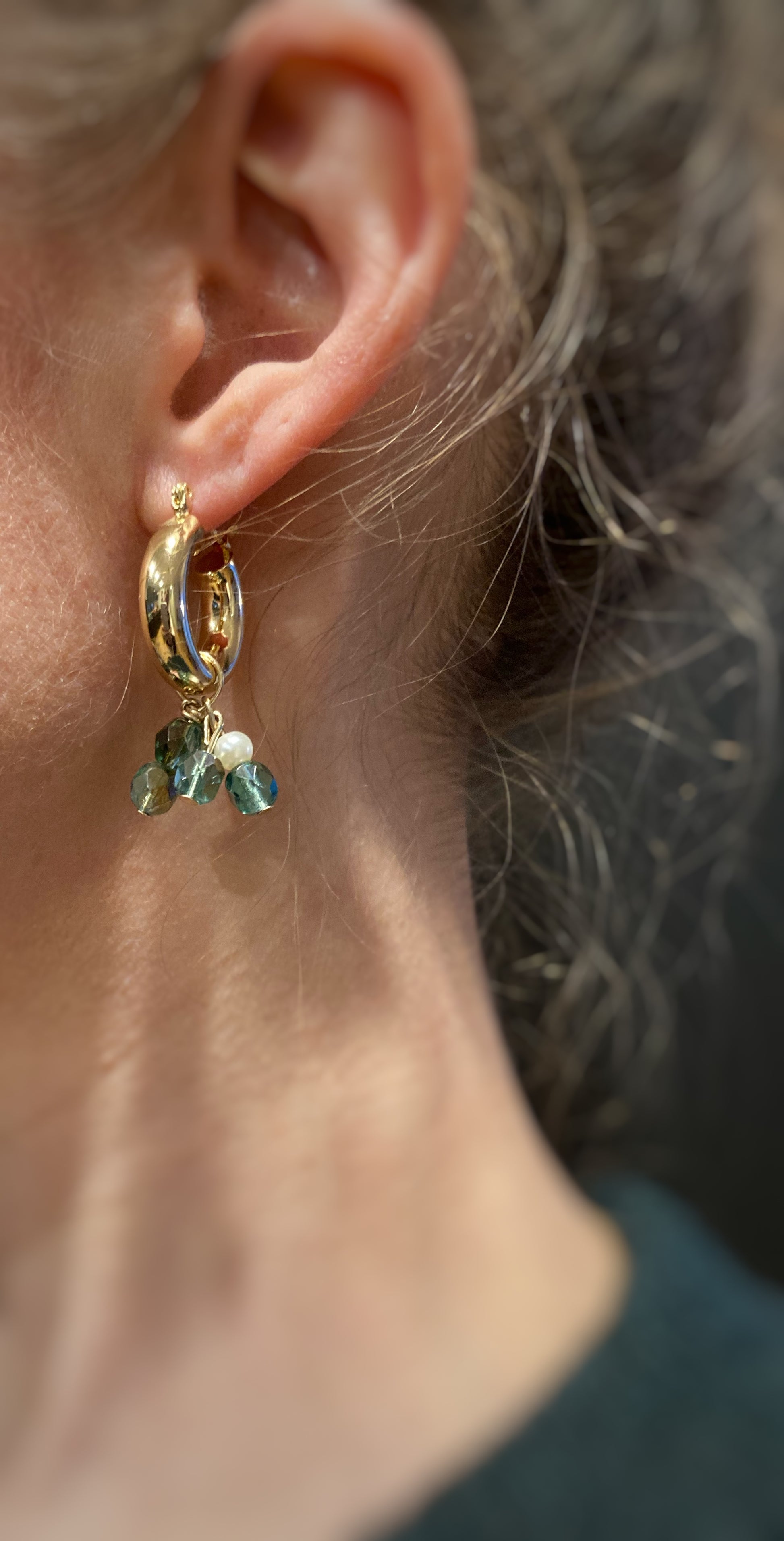 Säde on koru isolla trendikkäällä renkaalla ja kuorrutuksella oikeita helmiä ja lasihelmiä.